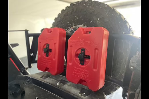 Extend your ride with up to two gallons of additional fuel capacity. Our custom RotopaX mount is designed to attach securely to your Horizon Spare Tire Carrier.